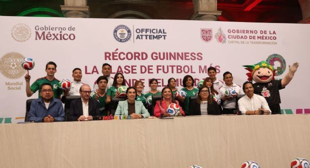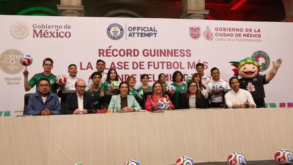 Ciudad de México, a 09 de marzo de 2026. La Jefa de Gobierno, Clara Brugada Molina, presentó los detalles de la jornada histórica que se llevará a cabo el próximo domingo en el Zócalo capitalino, donde más de 10 mil personas se reunirán para romper el Récord Guinness de la clase de futbol más grande del mundo.