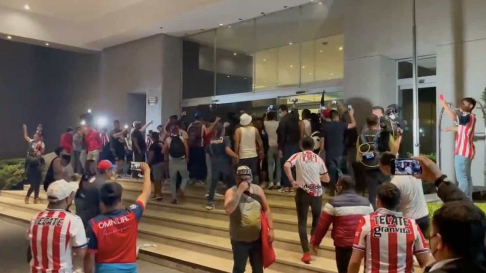 Por lo que la escuadra rojiblanca terminó por reincorporarse a sus habitaciones cuando la agresión escaló y los "pseudoaficionados", así denominados por Chivas, rompió el vidrio de la entrada del hotel.