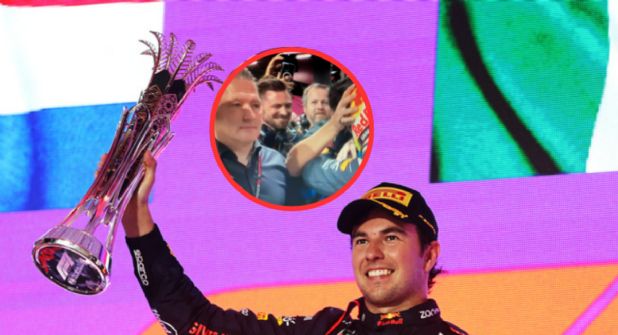 Sergio Checo Pérez conquistó su primer Gran Premio de la temporada al subir a lo más alto del podio en Arabia Saudita. El piloto mexicano celebró con sus compañeros en Red Bull Racing, mecánicos e ingenieros, pero el momento de tensión fue protagonizado por Jos Verstappen, papá de Max, quien lo ignoró y no dudo en mostrar en su rostro su molestia por el triunfo de Checo.