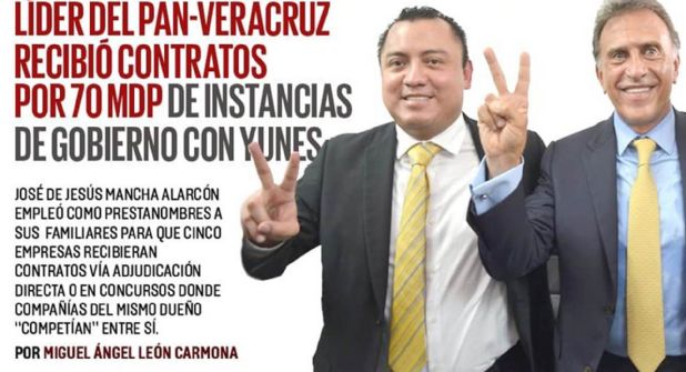 Xalapa, Ver.- José de Jesús Mancha Alarcón, presidente en Veracruz del Partido Acción Nacional (PAN), recibió a través de cinco empresas contratos por 70 millones 86 mil 914 pesos de distintas instancias de gobierno, los cuales corresponden licitaciones de obras públicas y convenios publicitarios en los ejercicios fiscales 2017 y 2018.
