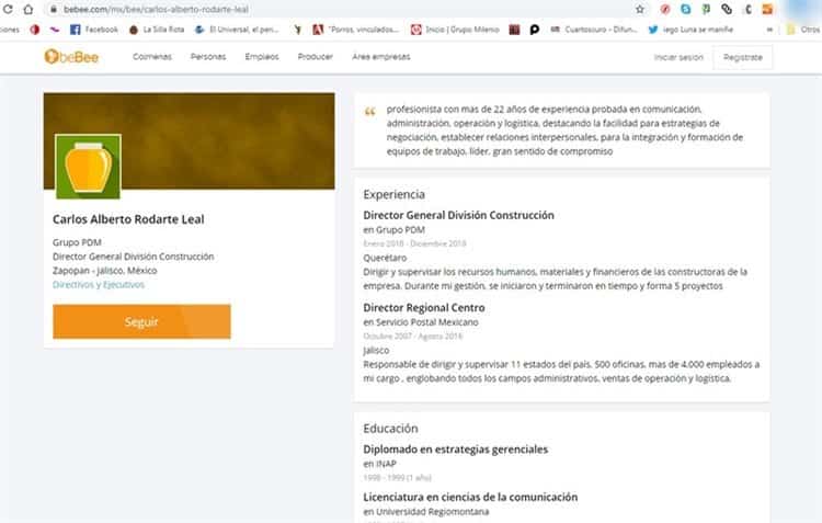 Su carrera política es más breve, pues al ingresar a Sepomex fue asignado a la oficina regional en Jalisco donde, él mismo describió sus funciones bajo el cargo de gerente estatal, según una plataforma virtual para empleo. “Responsable de dirigir y supervisar once estados del país, 500 oficinas, más de 4 mil empleados a mi cargo, englobando todos los campos administrativos, ventas de operación y logística”, escribió.