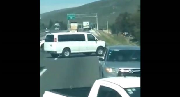 PUEBLA (La Silla Rota).- Automovilistas que circulaban sobre la autopista Puebla-México frenaron ante el asalto que realizó un comando a un trailero que transportaba detergente. En un video que circula en redes sociales, se observa como algunos conductores optaron manejar en sentido contrario para huir de los hombres armados y otros se echaron de reversa.