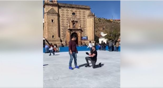 En redes sociales se ha hecho popular mostrar las propuestas de matrimonio, podemos ver parejas proponiéndose matrimonio en una cena romántica en un lujoso restaurante, o también en otros climas como en la playa, sin embargo, Parral, Chihuahua se llenó de una romántica y congelante escena de amor, al momento de que un joven le propuso matrimonio a su novio en la pista de hielo de esta entidad.