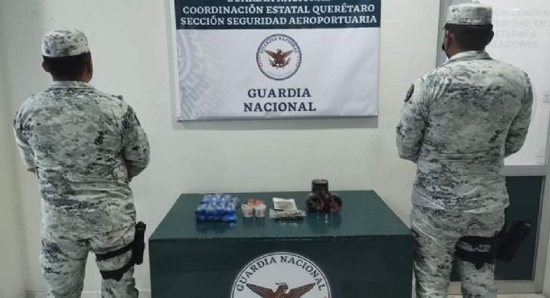 QUERÉTARO.- Con la ayuda de binomios caninos y en un operativo antinarcóticos, la Guardia Nacional aseguró 15 sobres con galletas, cuatro frascos con gomitas y cuatro dulces de tamarindo elaborados con extracto de cannabis. El decomiso fue en el Aeropuerto Internacional de Querétaro.