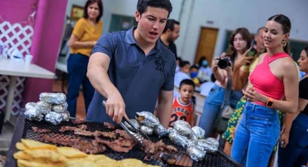 MONTERREY.-El gobernador Samuel García y su esposa Mariana Rodríguez volvieron hacer caso omiso a las recomendaciones de Derechos Humanos de no exhibir a niños del DIF y hasta realizaron una carne asada.