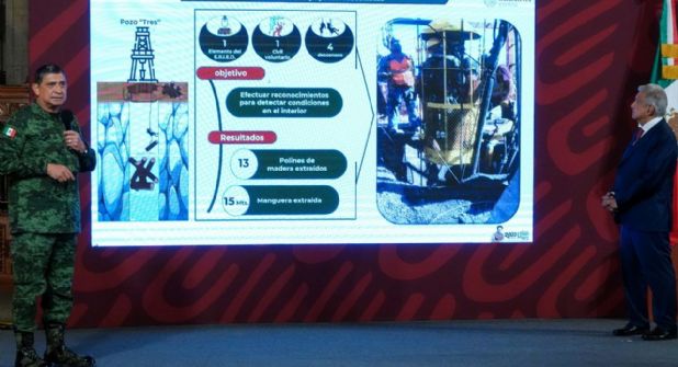 “He dado instrucciones para que se refuerce todo el plan de rescate. Están bombeando 290 litros por segundo, lo vamos a incrementar y los ingenieros mineros están haciendo una propuesta para hacer una especie de barrera de una mina a la otra y detener el agua”, dijo el presidente durante su conferencia mañanera.