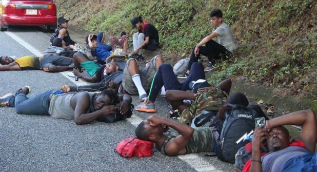 El grupo de migrantes avanzó por la carretera costera rumbo a la salida de Viva México, para emprender el camino en la carretera federal 200, que conecta Chiapas con Oaxaca.