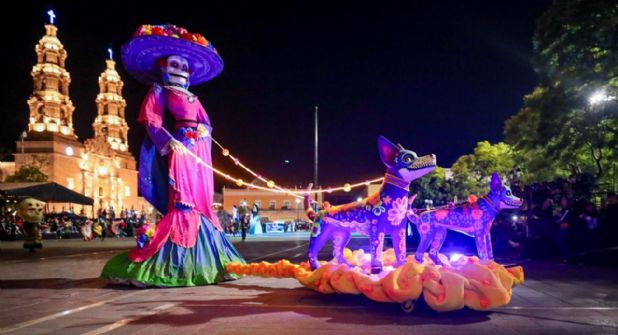 Miles de personas se dieron cita en el centro de la ciudad para disfrutar el tan esperado Desfile de Calaveras 2023 “Viva La Catrina”, atractivo estelar del Festival Cultural de Calaveras y donde el Gigante de México se vistió de música, color y tradición en Aguascalientes.