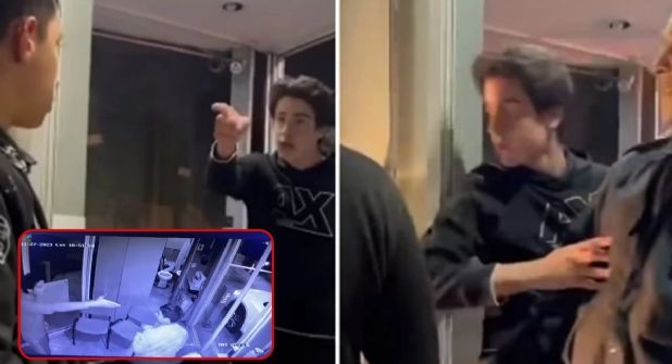 En una serie de videos se ve cuando baja de un Jeep negro, ingresa a la caseta de vigilancia y empuja con fuerza al vigilante que cae al suelo; cuando se incorpora lo empuja por segunda vez y lo golpea en repetidas ocasiones, sin que la víctima responda la agresión.