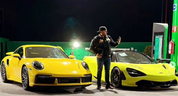 En videos que circulan en redes se observa el momento en que “El Charly” llega al bar en un McLaren amarillo, del cual solía subir fotos en sus redes sociales. Era de noche.