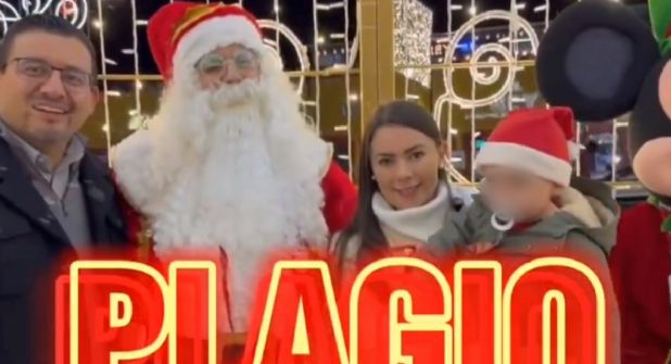En apenas 1 minuto y 17 segundos aparecen en algunas escenas colocando esferas al árbol navideño, acompañados de su hijo junto a Santa Claus y un Mickey Mouse; en otras Alcántara Montiel carga a su mascota sin dejar de cantar, o ambos caminan por el parque principal del municipio poblano.