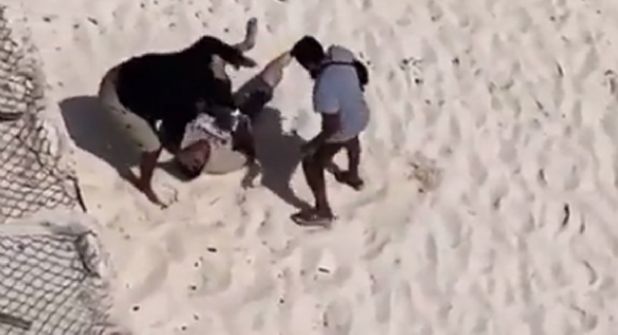 La agresión fue cerca de las 10 de la mañana en el área de playa del hotel Crown Paradise de Cancún, ubicado en el kilómetro 18.5 del bulevar Kukulcán. A pesar de que a esa hora había muchos turistas a los agresores no les intereso y lanzaron puñetazos y patadas el vendedor que se encuentra tirado en la arena.