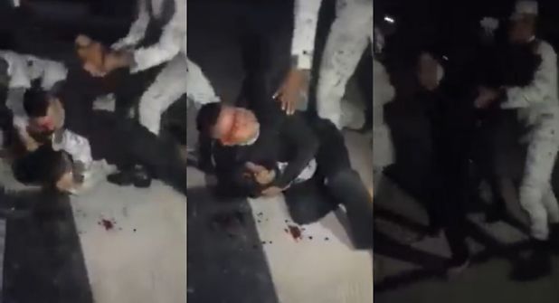 Otro elemento uniformado le dice “comandante suéltelo” pero se niega y continúa sujetando al teniente con una llave de candado. Cuando logran separarlos los hacen hacia un lado, pero el comandante insiste y vuelve a sujetar al sujeto y a golpearlo.