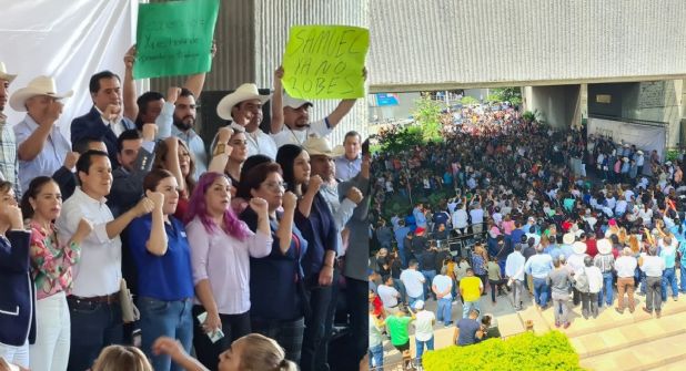 Los ediles, principalmente del PRI y del PAN, realizaron un acto de protesta y advirtieron que acudirán a todas las instancias, incluso, si tienen que realizar movilizaciones, las harán.