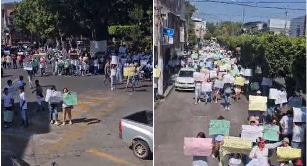 Los manifestantes recorrieron las principales calles de ese municipio michoacano, hasta llegar a la plaza principal, ubicada frente a la presencia municipal.