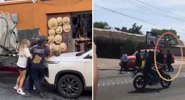 El video difundido principalmente en Twitter dura poco más de 50 segundos, en él se logra ver a los tres policías uniformados con la leyenda “Transito Morelos”, ellos tratan de someter a un hombre, a quien se le abalanzan e incluso uno de ellos ahocar al turista sujetándolo con una llave de candado.