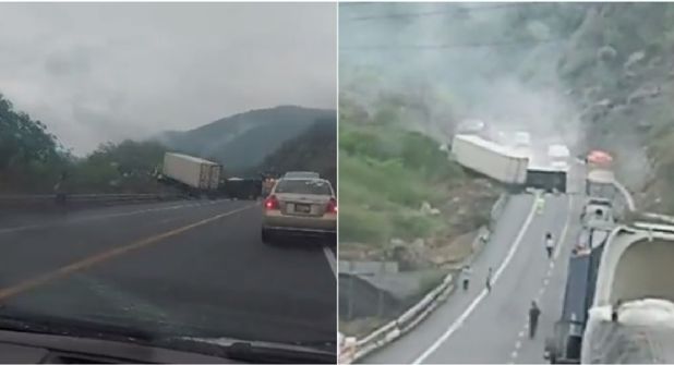 De acuerdo con personal de la Guardia Nacional que llegó a la zona del percance se dio cerca de la plaza de cobro Las Cañas, derivado de este accidente la circulación en el kilómetro 255 se encuentra afectada, luego de que se impactaran dos tractocamiones cuando ambos pretendieron rebasar.