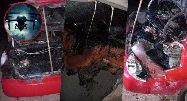 Previo a la ofensiva criminal, una familia grabó en video, el momento en el que uno de los artefactos no tripulados sobrevolaba la zona. A los pocos minutos, se escuchó la explosión: el artefacto había pasado la techumbre de una vivienda e impactó en un vehículo estacionado en la cochera.