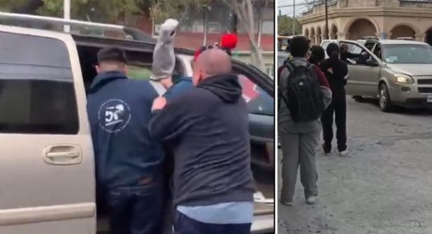 A la vista de estudiantes y personas en general, el joven estudiante fue subido a un auto para ser anexado por problemas de adicciones a petición de sus padres, según se informó a las autoridades.