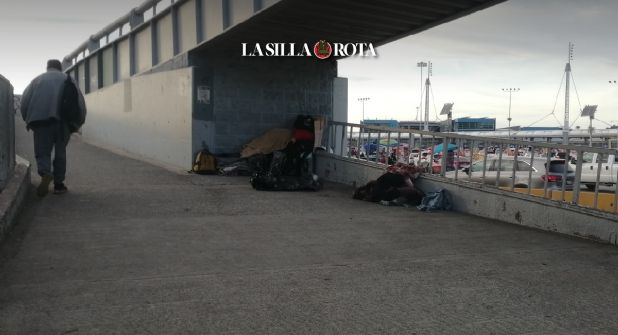 El viento helado corre libremente debajo del puente en el que los migrantes se acurrucan, otros buscarán quizá el pasillo en lo alto para tratar de protegerse un poco más.