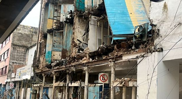 El derrumbe ocurrió aproximadamente a las cuatro de la mañana frente al mercado municipal de Tampico, más no se reporta ninguna víctima mortal ni personas heridas, indicó.