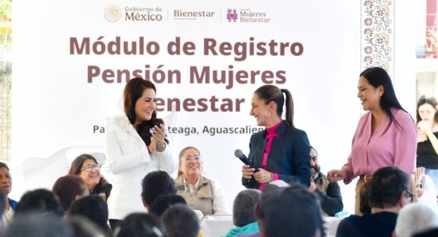 Inicialmente, Tere Jiménez y Claudia Sheinbaum visitaron la cabecera municipal de Pabellón de Arteaga, donde conocieron los avances en el registro del programa Mujeres Bienestar que promueve el Gobierno Federal.