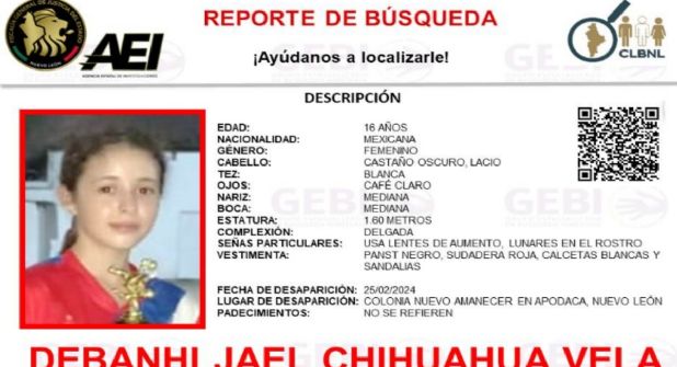 Se reportó la desaparición de la joven Debanhi, de 16 años de edad, registrada en la colonia Nueva Amanecer, en el municipio de Apodaca, Nuevo León. Su familia no sabe de la menor de edad desde el pasado 25 de febrero.