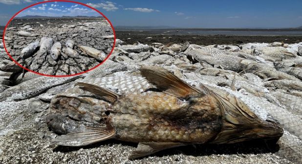 CHIHUAHUA. - El Día 0 en Chihuahua ya ha provocado escenas apocalípticas, donde antes había un gran cuerpo de agua por la laguna Bustillos, ubicada en el municipio de Cuauhtémoc, ahora solo queda un cementerio de cientos de peces que preocupa a campesinos pues ya no podrán tomar agua y así sembrar sus huertos.