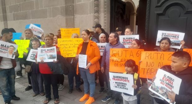 Por su parte, la diputada de Movimiento Ciudadano encabezó a un grupo de usuarios del transporte y bloqueó la calle Zaragoza en un costado del Palacio de Gobierno estatal, donde temprano entregó un documento con propuestas entre ellas que reflexione el gobernador Samuel García y no publique en el Periódico Oficial el incremento tarifarío.