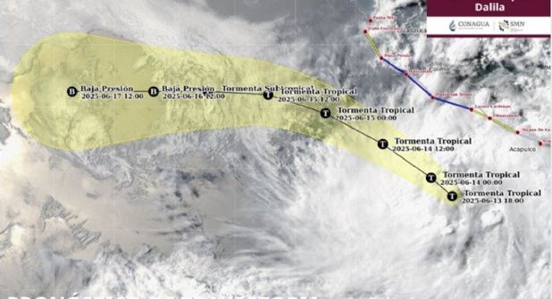 La tormenta tropical Dalila, es el segundo ciclón de la temporada 2025, se formo este viernes frente a las costas del Océano Pacífico mexicano, específicamente en el sur de Guerrero y Michoacán.