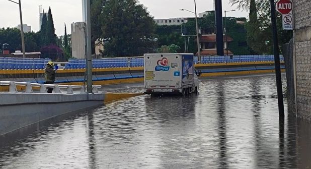 La intensa lluvias registradas provocó severos encharcamientos sobre la Vía Atlixcáyotl, particularmente a la altura del acceso a Lomas de Angelópolis, uno de los fraccionamientos más exclusivos de la zona metropolitana.
