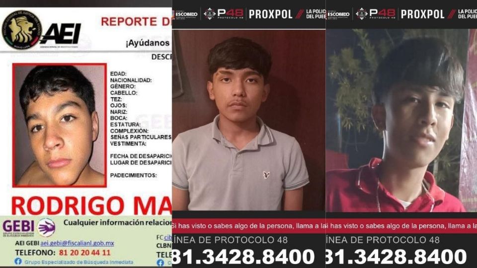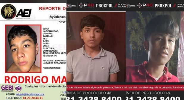 - Rodrigo Macías Molina, de 15 años, con residencia reportada en las colonias Colinas de Anáhuac.