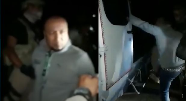 La escena es, en medio de la oscuridad de la madrugada, apenas iluminada con la linterna de mano que lleva un elemento de la Agencia de Investigación Criminal. Enfoca al recién capturado y luego al piso de tierra por donde lo llevan, con las manos esposadas hacia la espalda.
