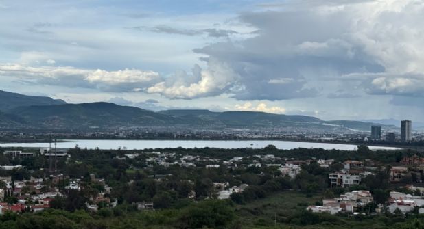 León, Guanajuato.- El panorama de la presa El Palote luce renovado. Desde la cima del Parque Metropolitano, el espejo de agua se extiende como un respiro azul entre la ciudad y las montañas. El verde intenso de los árboles y la vegetación que rodea la zona contrasta con las nubes cargadas que prometen más lluvia. Las recientes tormentas han dado vida a este emblemático cuerpo de agua.