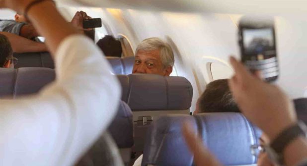 López Obrador salió del estado en un vuelo comercial, su comitiva hizo uso de un avión de la Fuerza Aérea Mexicana.