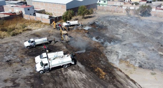 Celaya.- Protección Civil y Bomberos tardaron cuatro días en apagar el incendio al interior del antiguo relleno sanitario de la colonia Monte Blanco que comenzó a incendiarse en las primeras horas de este 2023, confirmó este martes la Secretaría de Seguridad Ciudadana.
