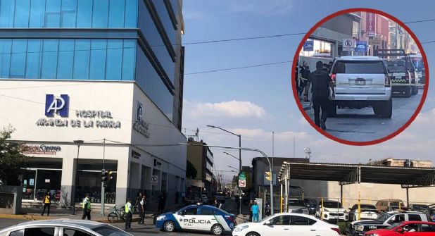 Afuera del Hospital Aranda de la Parra al menos 8 patrullas de policía se estacionaron sobre el bulevar López Mateos para evitar el paso de los vehículos hacia la calle Miguel Hidalgo, sobre la que se encuentra la entrada principal a la clínica. Además, los policías colocaron una cinta amarilla de esquina a esquina para evitar el paso peatonal.