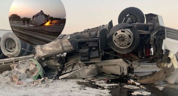 Salamanca.- Un tráiler cargado de cemento se volcó esta mañana sobre la carretera Celaya - Salamanca dejando un tramo de la autopista llena de polvo grisáceo, gaslina y un caos.