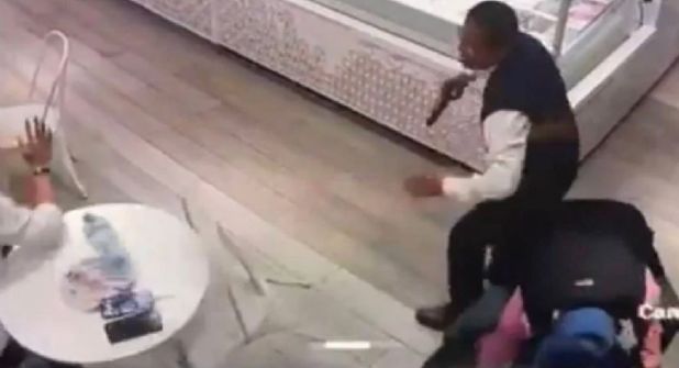 En el video se puede apreciar que dos sujetos se acercaron a él y uno de ellos lo encañonó con un arma de fuego y le ordenó que se tirara al suelo, mientras aprovechan para despojarlo de una impresora y 2 celulares.