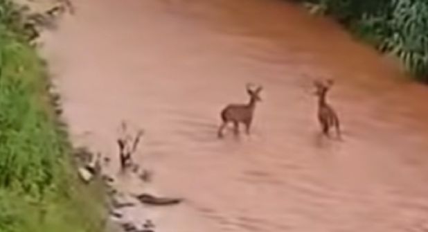 Silao-. Dos venados cola blanca (Odocoileus virginianus) fueron avistados esta mañana en el municipio de Silao. Estaban en medio de un río. Por las cornamentas se trataba de par de machos que siguieron algún punto del cauce moviéndose cautelosamente entre el agua turbia.