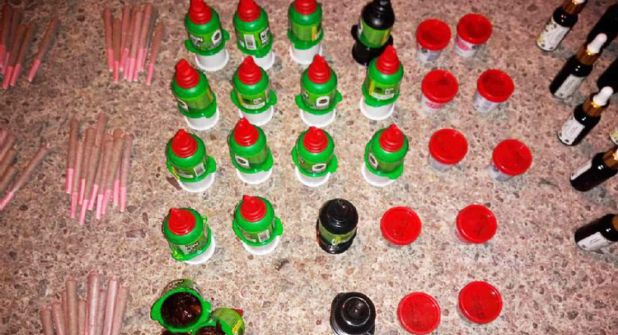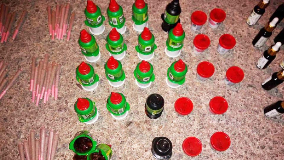 Al inspeccionar el contenido del bolso, los policías localizaron 80 cigarrillos de marihuana, 28 dulces de tamarindo con marihuana, 14 goteros de marihuana, una bolsa con marihuana, dos gramos de aparentes hongos alucinógenos y 109 bolsas para empaquetar.