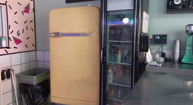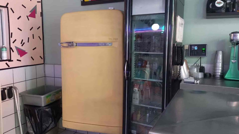 “Pasen”, la mesera camina en dirección a un refrigerador “vintage” color amarillo pastel y lo abre. Está pidiendo que la gente entre al refrigerador, que en realidad es una puerta que te lleva a unas escaleras que conducen al bar en el segundo piso.
