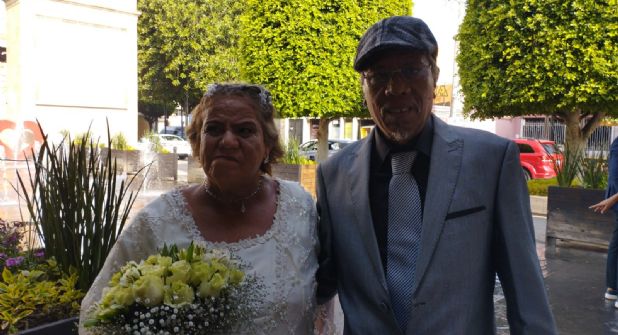 León.- María Teresa Mares Alvarado y Luis Manuel Espinoza Pérez, después de 48 años de vivir juntos como novios, con 6 hijos, 17 nietos y 4 bisnietos, decidieron dar el sí y contraer matrimonio.