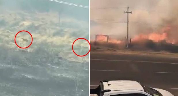 León.- Una familia de venados huyen de los incendios en el cerro del Cerro del Palenque, Área Nacional Protegida de Purísima del Rincón.