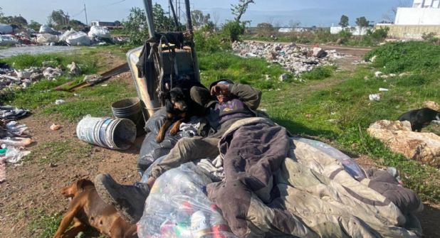 Memo acompañado de sus fieles mascotas junta fierro viejo, botellas, cartones, latas y todo lo que se pueda llevar al reciclaje.