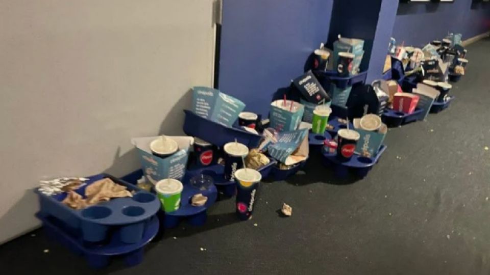 Escasa cultura por dejar la basura en su lugar hacen de Cinépolis un escenario de película postapocalíptica cuyo reflejo es la poca educación que se tiene por dejar un lugar limpio, así están las salas de Cinépolis en donde parece que el personal de limpieza se fue a huelga por días.