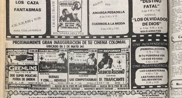 León-. Es la década de los noventas, es viernes, acabas de llegar de la secundaria, en la televisión se escucha un comercial de la SEP. Te quedaste de ver con tus amigos en el centro, pero antes consultaste la cartelera en los periódicos locales que tus padres dejaron en la mesita de la sala. Antes no había Netflix, ni aplicaciones móviles. Solo una enorme cartelera con decenas de películas en blanco y negro.