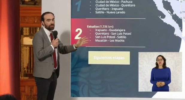 Dijo que se está trabajando en las "vías dedicadas", que significa aprovechar el derecho de vía existente, "además se podrá circular con velocidades máximas de 160 a 200 km por hora dependiendo de los tramos", informó.