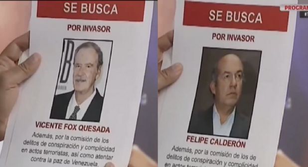Diosdado Cabello ha ordenado la distribución de los carteles en “todo el territorio nacional, en puertos, aeropuertos, calles, alcabal … “, calificando a los exmandatarios como “delincuentes” e “invasores”. Además de Fox y Calderón, los expresidentes mencionados son Andrés Pastrana (Col … Mireya Moscoso … ), y Jamil Mahuad … ). En los carteles, cada uno está señalado como … “.