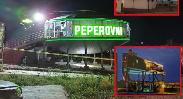 Un platillo volador, no identificado, que pareciera abducir a una vaca hecha con animación, ubicado también la zona más alta de la ciudad de León, es un lugar que fascina a los niños de casa, pues es un restaurante de pizzas, con videojuegos y un área de juegos infantiles para los menores de 6 años.